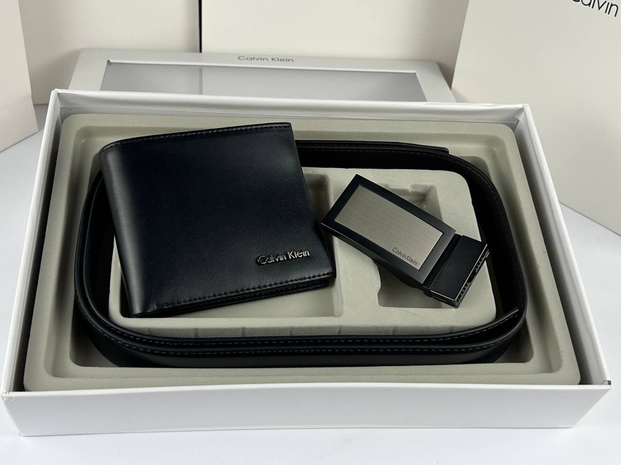 Made from high-quality, soft leather, it seamlessly wraps around the other accessories in the set. It features an elegant Calvin Klein metal buckle, adding a touch of luxury and distinction to your look.