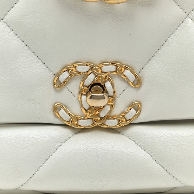 Elevate your look with the iconic CHANEL 19 handbag — a perfect blend of classic elegance and modern edge. Crafted from luxurious shiny lambskin and adorned with bold mixed-metal hardware in gold, silver, and ruthenium tones, this bag is a timeless statement piece for any wardrobe.