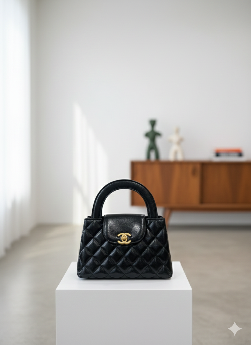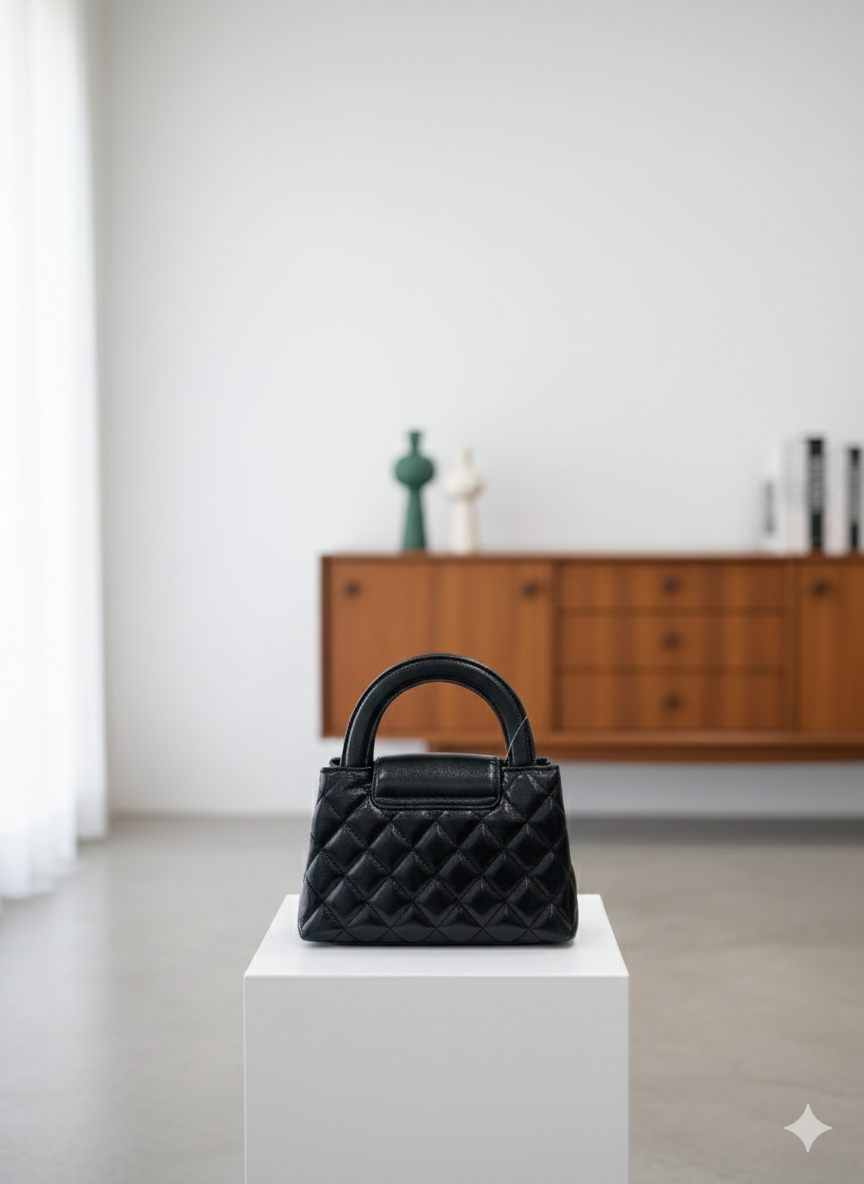 – Material and Design: Luxurious quilted leather in the iconic quilt pattern, in a deep black hue that reflects strength and femininity, with an elegant top handle that gives the bag a classic, cohesive look.