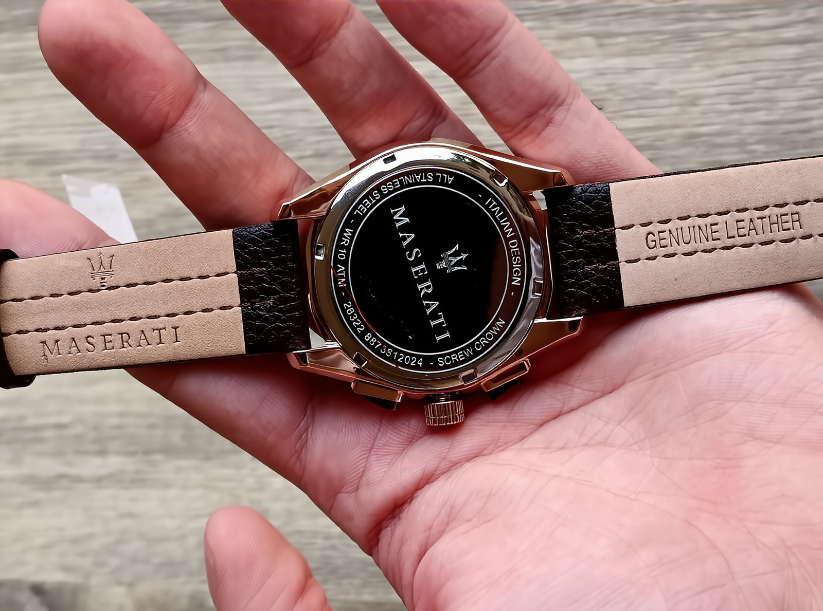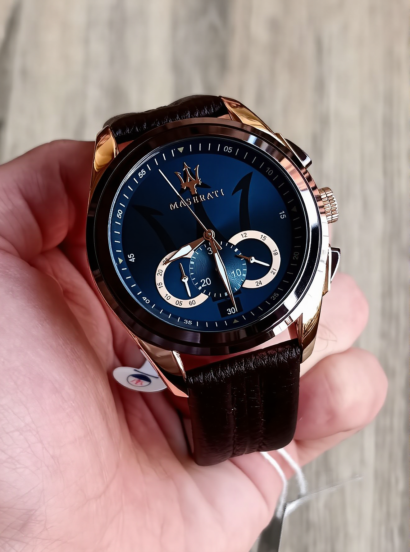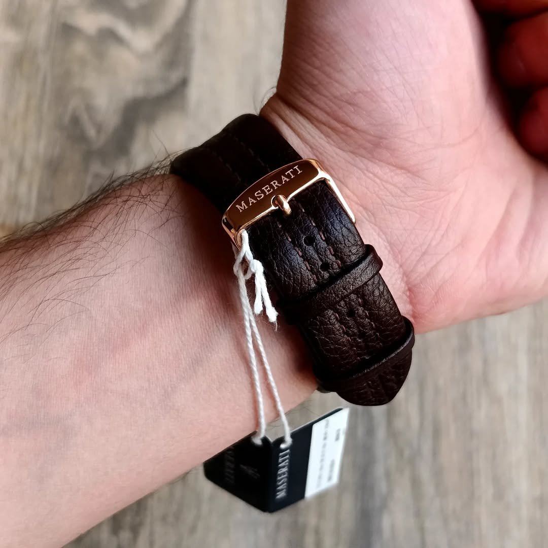 The gold Maserati logo proudly adorns the dial