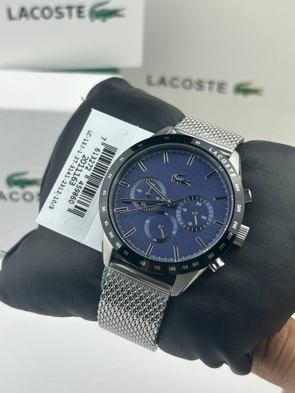 The iconic crocodile logo proudly adorns the dial, embodying the Lacoste identity with boldness and distinction.