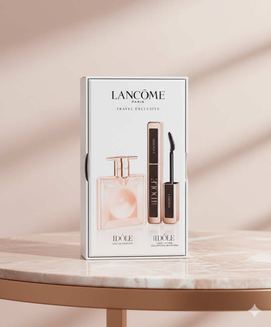The Idôle Eau de Parfum fragrance features the iconic slim bottle, one of the thinnest perfume bottles in the world, with a brilliant light-reflecting sheen.