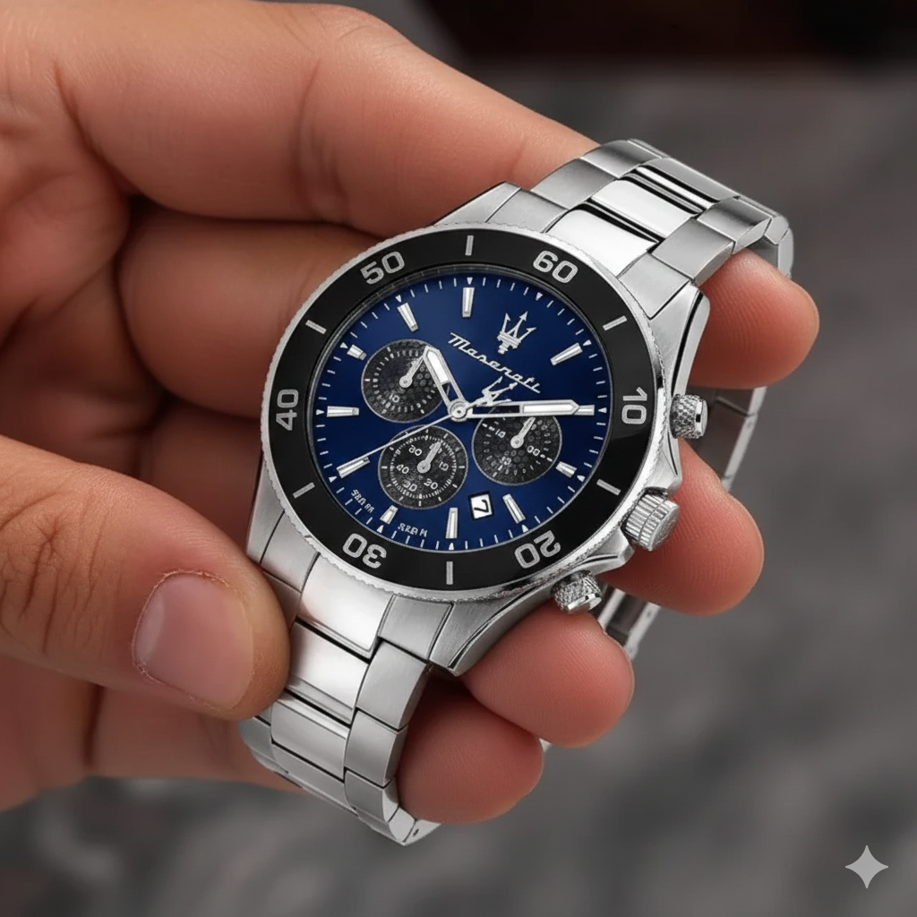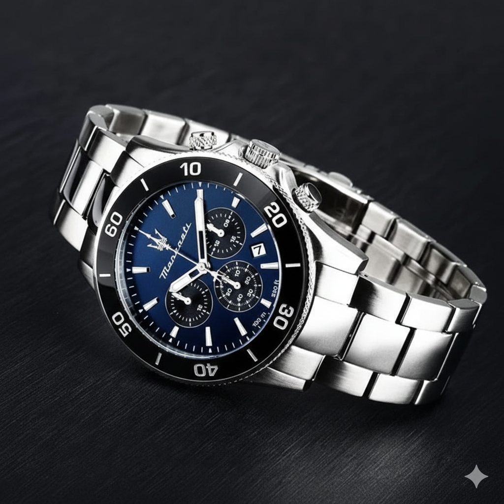 MANBACH Men’s Chronograph Watch – Blue Dial, Stainless Steel Bracelet