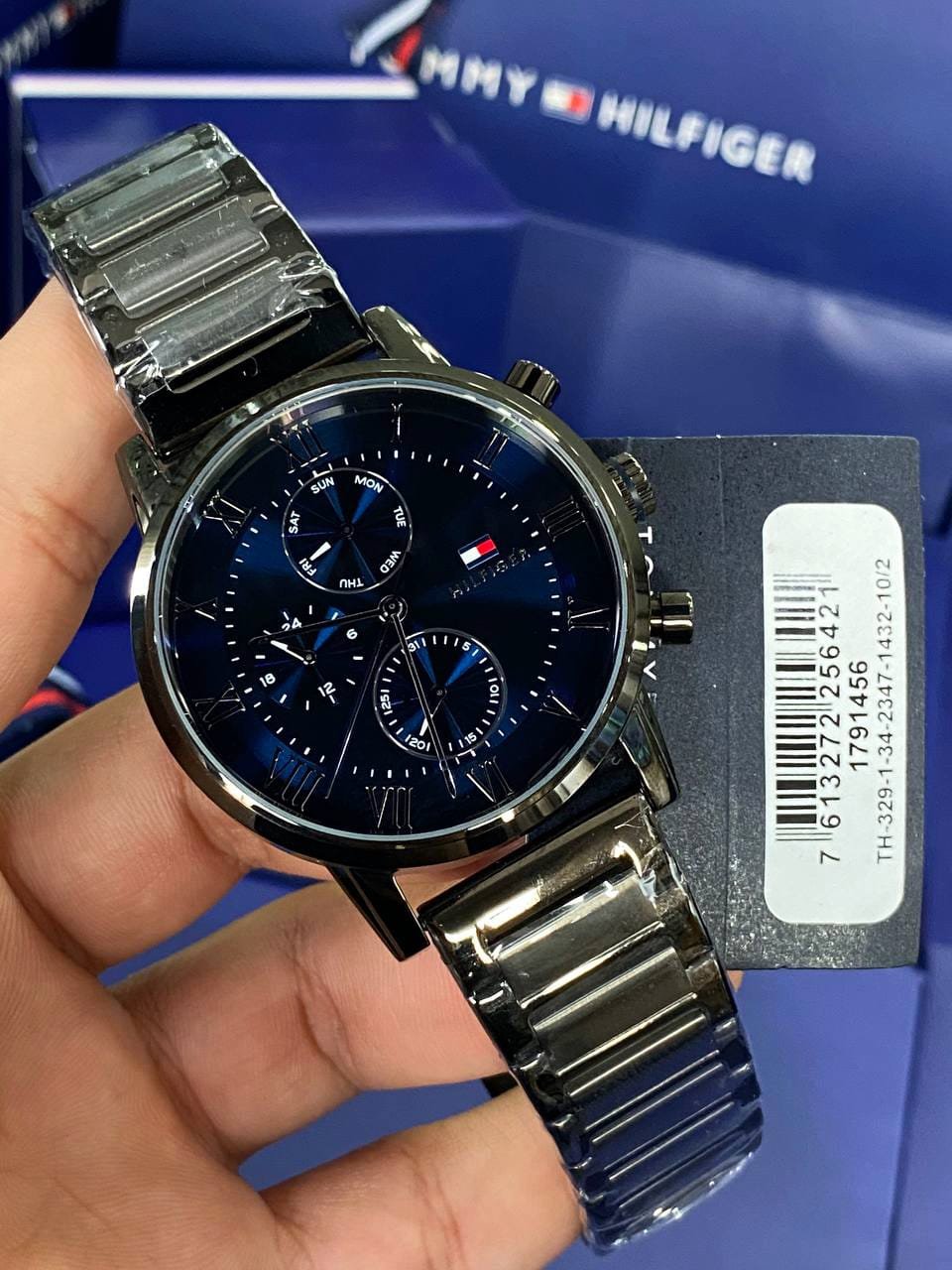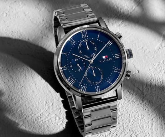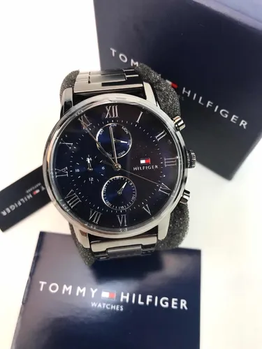 Complete your look with this Tommy Hilfiger watch, which perfectly combines classic style with contemporary touches. With its radiant design, the deep blue dial shines like a night sky, adorned with three perfectly designed counters—day of the week, date, and precise timekeeping.