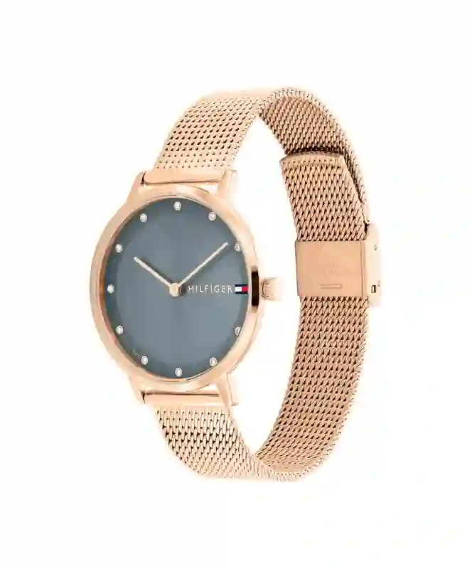 This watch from Tommy Hilfiger embodies the spirit of modern elegance with a classic, sophisticated touch. It features a luxurious gold-tone mesh strap that wraps smoothly around the wrist, giving you a sense of distinction and sophistication at every moment.