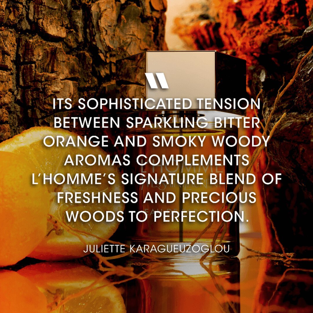 The warmth of Bourbon notes in tension with the bitterness of orange reinvents L’HOMME’s iconic woody signature in an even more powerful, intense version: L’HOMME Eau de Parfum. A sophisticated blend composed by a vibrant sparkling top of bitter orange infused with noble Vetiver Heart from Haiti & a uniquely innovative ingredient, Oakwood infusion. An upcycled ingredient distilled from the wood chips of oak casks crafted in Cognac. The oaks are sustainably sourced and selected for their superior aromatic profile. Shake. Succumb.