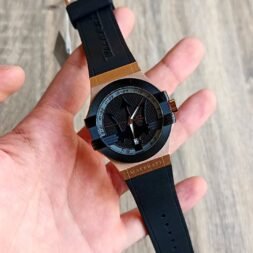 Maserati Men’s Chronograph Watch – Black Dial with Blue Accents, Rubber Strap