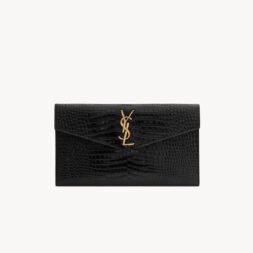 Saint Laurent Uptown Pouch – Croc‑Embossed Shiny Leather